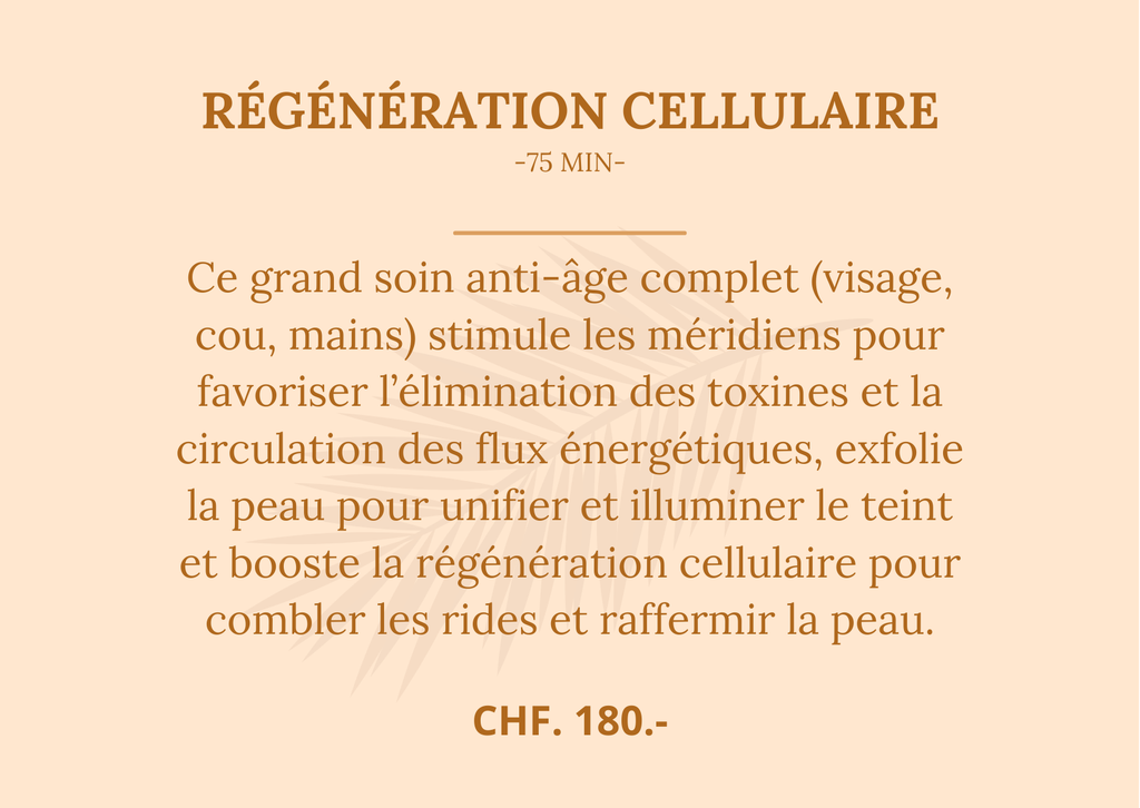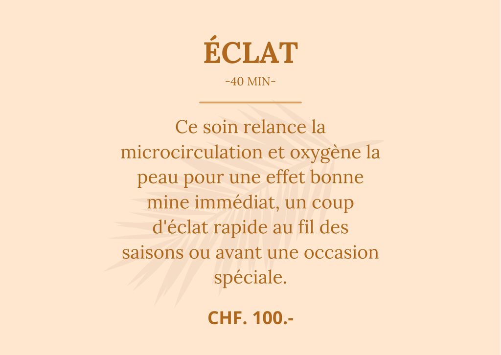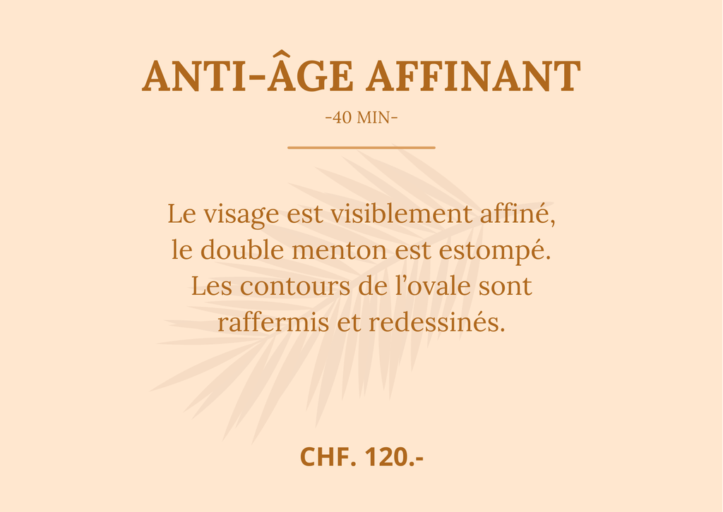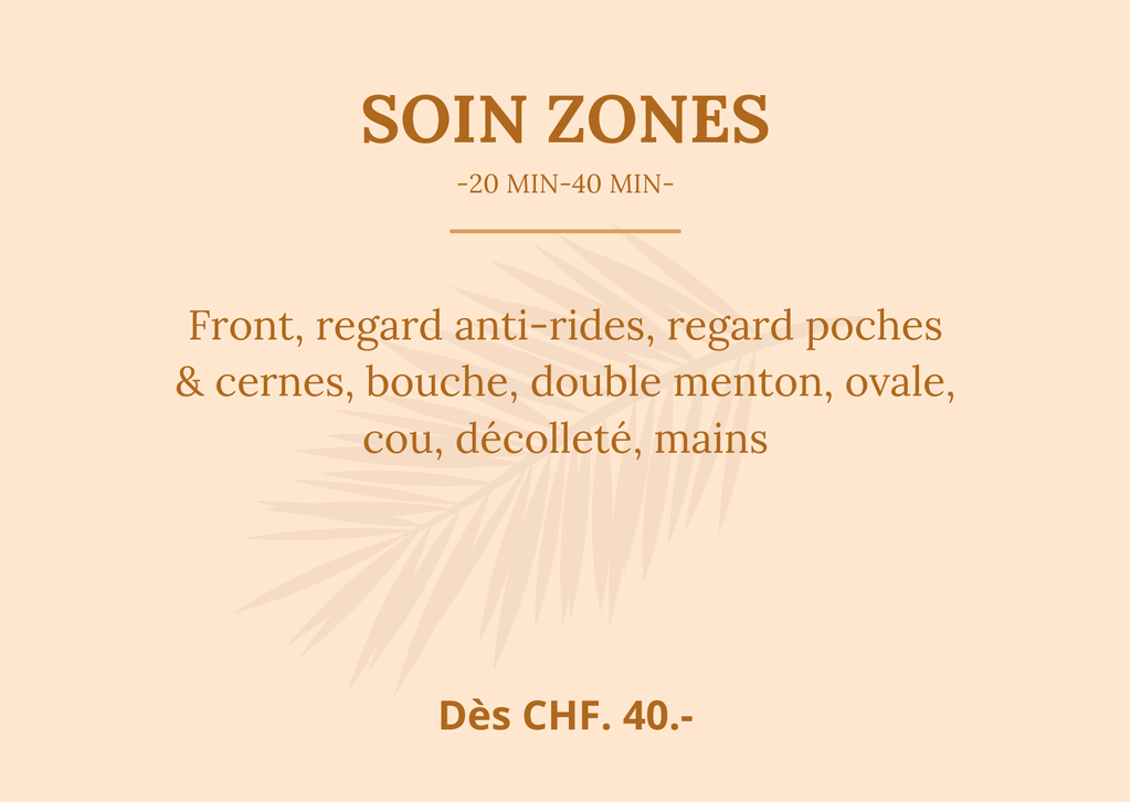 La durée indiquée correspond au temps de soin. Afin de profiter pleinement de votre moment, comptez environ 10 minutes supplémentaires pour l’accueil, la préparation et la fin du soin.